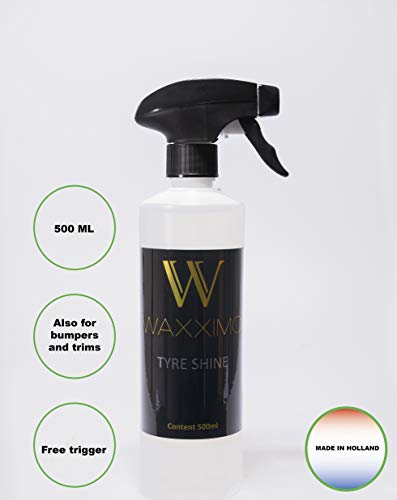 Waxximo tyre shine – bandenglans – Back to black wet look – Extreme hoogglans – 500ML – gebruik i.c.m. applicator pad of spons – voor alle banden en kunststof – met siliconen geen gel