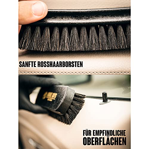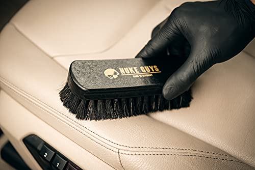Nuke Guys Lederen borstel M – Made in Germany met paardenhaarharen auto interieur reiniging | zachte textielborstel ideaal voor autostoelen, kussens, alcantara, leer, cabriodekens, tapijten, stoffen stoelen, bank