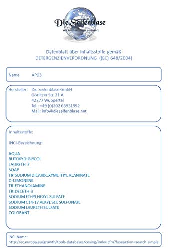 Ons informatieblad volgens detergenciaverordening (INCI) vind je onder: https://dieszefenblase.net/sdb of in onze fotogalerij
