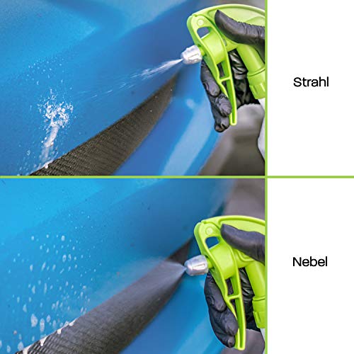 Green Star Edition Mercury Super PRO + spuitfles van 0,5 liter en werkend op alkaline: ✅ Afzuigsproeiapparaat. ✅ Bestand tegen alkalische stoffen (pH 8-14). ✅ Praktische trekkerfunctie met dubbele werking: druk één keer op de trekker en spuit twee keer. ✅ Sproeistraal instelbaar door de klep te draaien. ✅ Transparante volumeweergave en een stabiliseringsring voor een stevige stand.