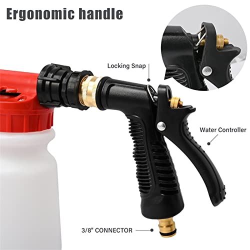 Youool Autoschuimpistool 900 ml, 2-in-1 instelbare schuimlans, auto cleaning foam gun schuimkanon tuinslang aansluiten voor het reinigen van auto- en motortuinen