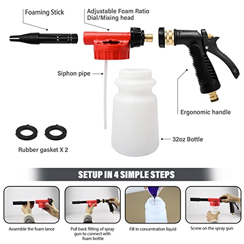 【Multifunctioneel, praktisch voor je leven】 In vergelijking met andere gangbare schuimpistolen zijn onze schuimreinigingspistolen eenvoudig in design, geschikt voor de meeste tuinslangen, voor het wassen van de auto, ramen of voor andere reinigingen en kunnen in enkele seconden worden gereinigd. Zeer comfortabel en probleemloos te installeren en te gebruiken.