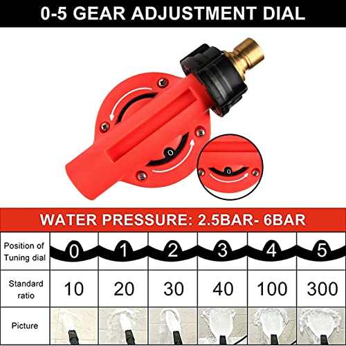 【Verstelbaar instelwiel, vrije bediening】 Het schuimpistool is instelbaar, het schuim wordt nauwkeurig gemengd en gespoten, de wijzerplaat heeft 6 standen, je kunt dit instelwiel gebruiken om de spray van het schuimpistool te regelen.