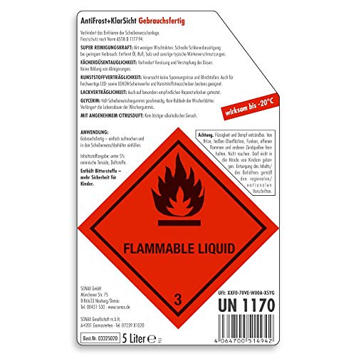 Specification: Sonax AntiFrost&KlarSicht gebruiksklaar tot -20 °C (5 liter) is een snelle, streepvrije en effectieve ruitenreiniger voor de winter, art.nr. 03325000
